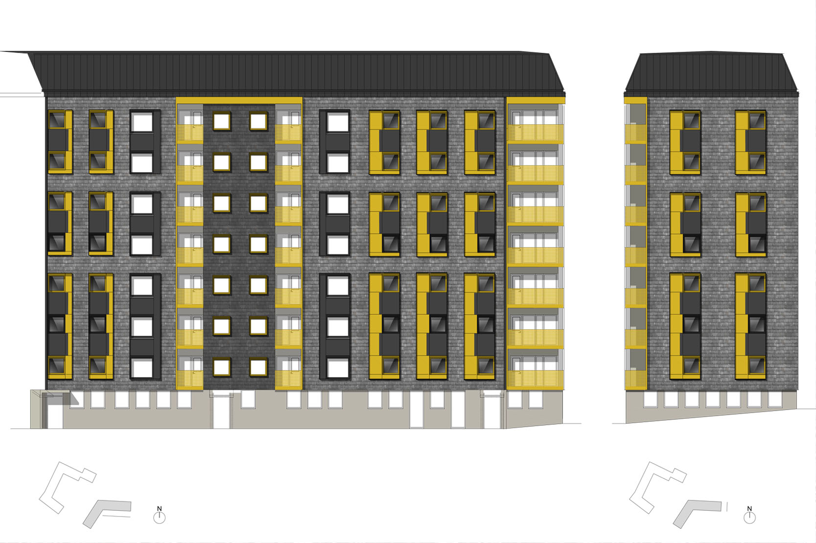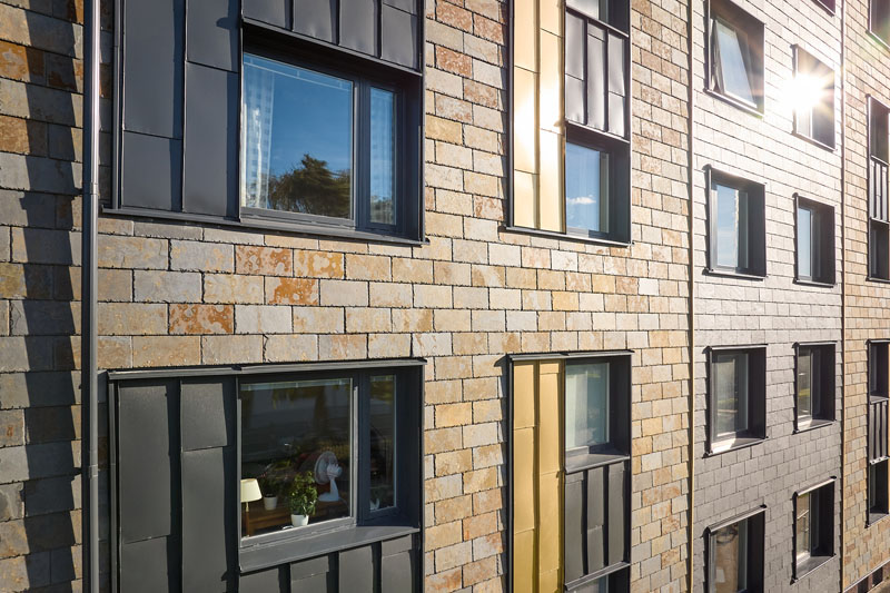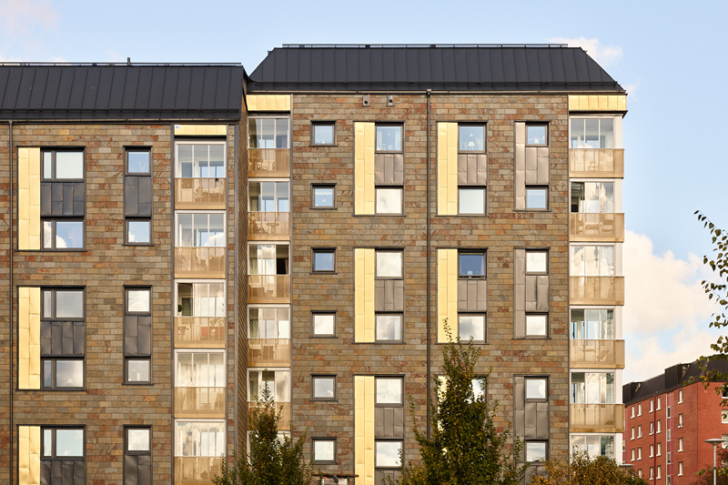 Vår vision innebar att skapa en enhetlig rytm i fasaden genom att kontrastera mörka skifferdetaljer med ljusare nyanser, vilket skapar en dynamisk visuell effekt. Genom att rama in och gruppera fönstren samt införa eleganta guldaccenter på utvalda detaljer och balkongräcken, tillförde vi en känsla av lyx och exklusivitet till varje del av fastigheten.